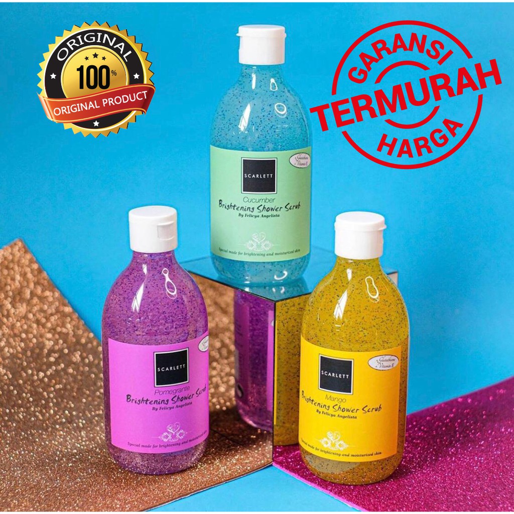Sabun Mandi Scarlett Whitening. Scarlett whitening shower scrub / sabun mandi scarlettrp55.000: Untuk sabun mandi ini, saya bahkan sampai udah lupa berapa kali saya repurchase. Pomegrante dengan harum yang manis dan fresh, mango dengan wangi segar yang seperti citrus, dan cucumber dengan wangi yang tenang persis seperti air ketimun. Nggak kalah pamor dengan body scrub, sabun mandi cair ini juga menyita perhatian beauty enthusiast. Rasanya refreshing mandi pakai sabun dengan aroma yang menyegarkan seperti ini. Scarlett whitening shower scrub by felicya angelista / sabun mandirp56.500: Scarlett whitening shower scrub bisa dipakai terpisah layakya sabun mandi biasa. Ada banyak brand yang bisa anda temukan secara online, seperti the body shop, lifebuoy dan dettol sebagai alternatif pilihan lain dari sabun mandi & sampo scarlett. Paket 3 item scarlett whitening ( lulur ,lotion ,sabun scrub ) orirp161.000: Untuk harga scarlett whitening body scrub ini 75k dan isi 350 gram. Tentu saya penasaran dong untuk membuktikannya! Produk pertama yang akan saya bahas adalah produk favorit saya, yaitu sabun mandinya atau scarlett brightening shower scrub. Tahukan anda bahwa scarlett whitening shower scrub, scarlett whitening shower scrub cucumber dan scarlett whitening body scrub romansa adalah sabun mandi & sampo scarlett terpopuler? Scarlett whitening body scrub sabun mandi (bpom ori)rp57.500: Terdiri dari 3 varian, yaitu:
